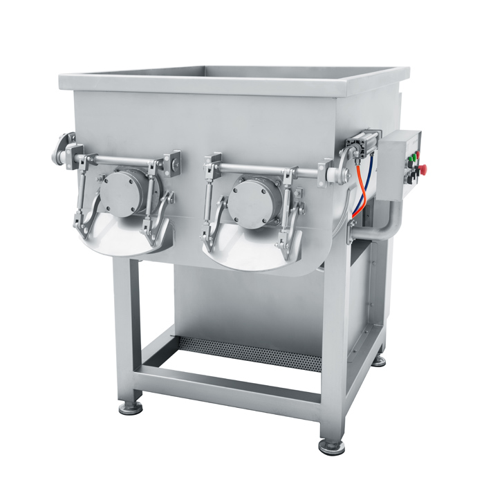 我公司生產(chǎn)的食品攪拌機(jī)是參照國際同類產(chǎn)品的特點(diǎn),同時(shí)結(jié)合我國肉制品加工工藝特點(diǎn),自行研制開發(fā)而成的新一代產(chǎn)品。是用于混料的必備設(shè)備,效率高,便于操作,真正實(shí)現(xiàn)了物料攪拌的均勻,膨脹充分,彈性好,色澤鮮艷并較大限度地提取蛋白質(zhì)多種功能,適合各種工藝要求,是制作風(fēng)干腸類產(chǎn)品、粒狀、泥狀混合腸類產(chǎn)品、丸類產(chǎn)品的選用設(shè)備。