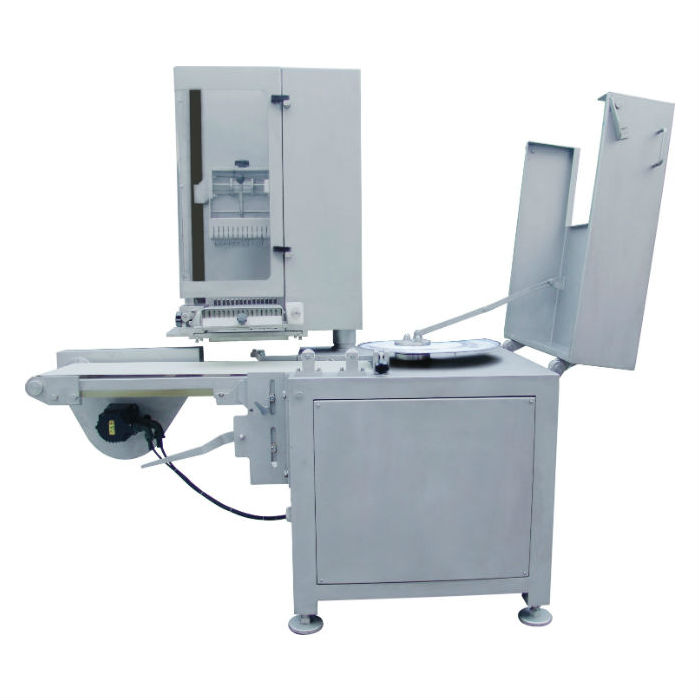 QP7470切片分份機(jī),具有高速切割、分份功能,可以在5-10℃、結(jié)露的環(huán)境連續(xù)工作,將-2℃至-10℃的叉燒肉和原料肉切成需要的片狀。較好的解決了以前單靠人工分切,切割速度慢、分份不均勻,產(chǎn)能低下,既耗費(fèi)工時(shí),又無(wú)法實(shí)現(xiàn)規(guī)?;a(chǎn)的難題,大地降低生產(chǎn)成本、提高生產(chǎn)效益!