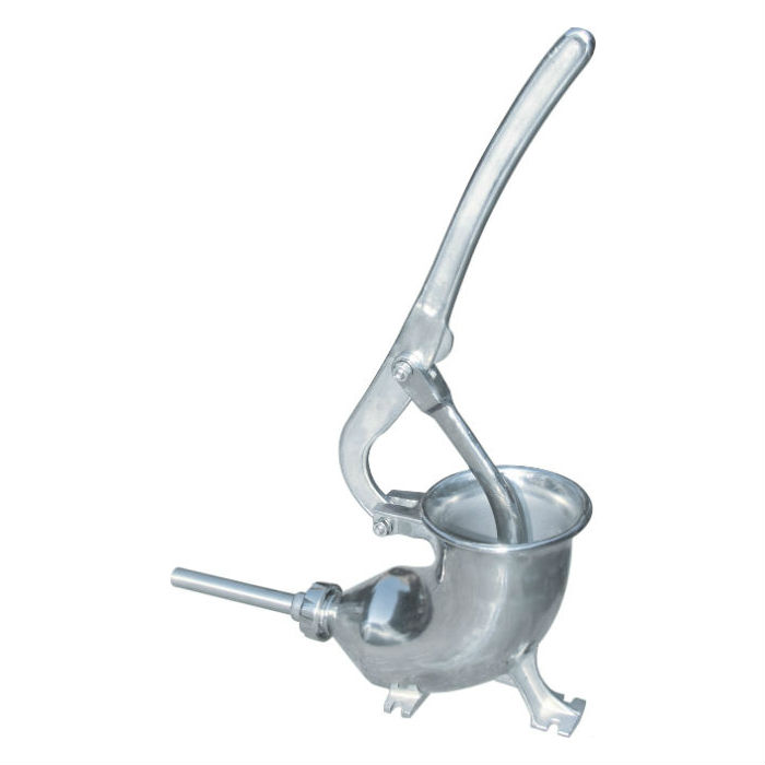 SG8手壓式灌腸機(jī),依據(jù)我國(guó)家庭、小作坊灌腸的實(shí)際操作情況,特研發(fā)出一款衛(wèi)生、操作簡(jiǎn)便的小型手動(dòng)灌裝機(jī),廣泛適用各種腸類制品的灌制。