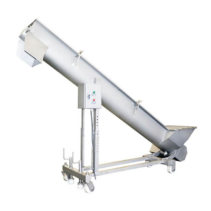 SLLX260螺旋上料機,主要用做肉食品行業(yè)有一定高度要求的設備喂料,其功能是將物料螺旋輸送到一定高度后,螺旋至設備的料斗中, 以完成加料工作,可以連續(xù)輸送提升各類固體食品級原料。