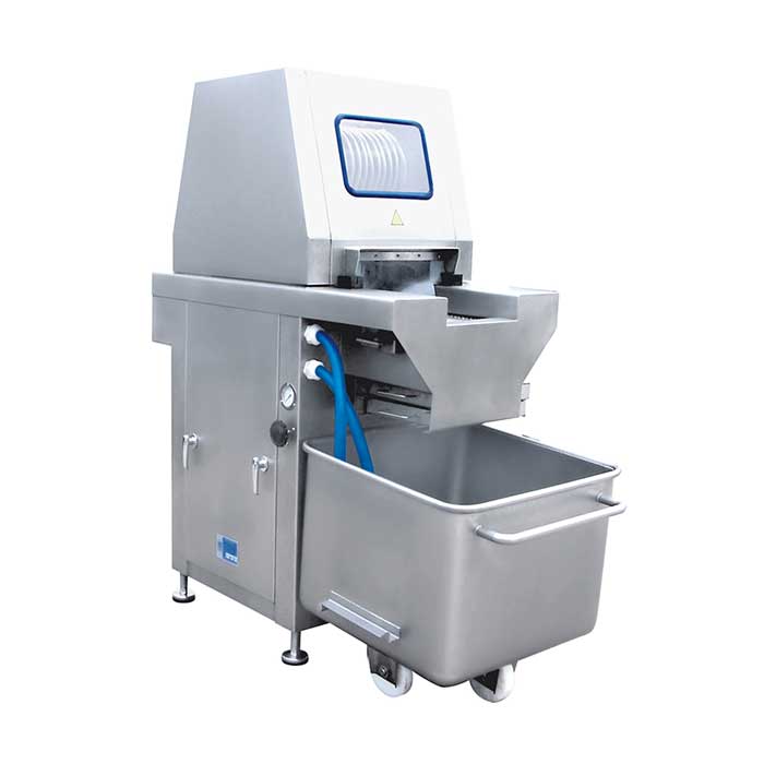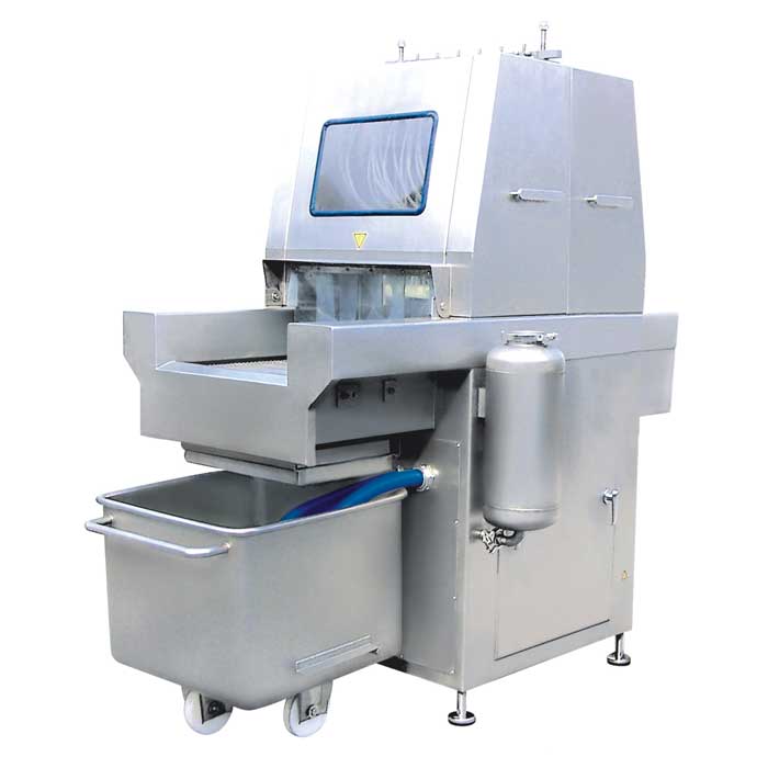◇ 可帶骨注射(設(shè)有自動保護裝置,當(dāng)注射針碰到硬物時,注射針隨之抬起,不受損壞;注射針可方便調(diào)節(jié)安裝)。注射針設(shè)計獨特、排列合理,料水可均勻分布在肉塊中,注射率可調(diào)。